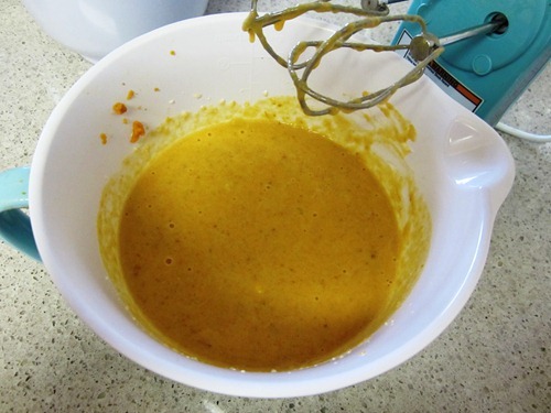 6. Now add the bananas, pumpkin, sour cream, vanilla, and spiced rum to the wet mixture. ![]()