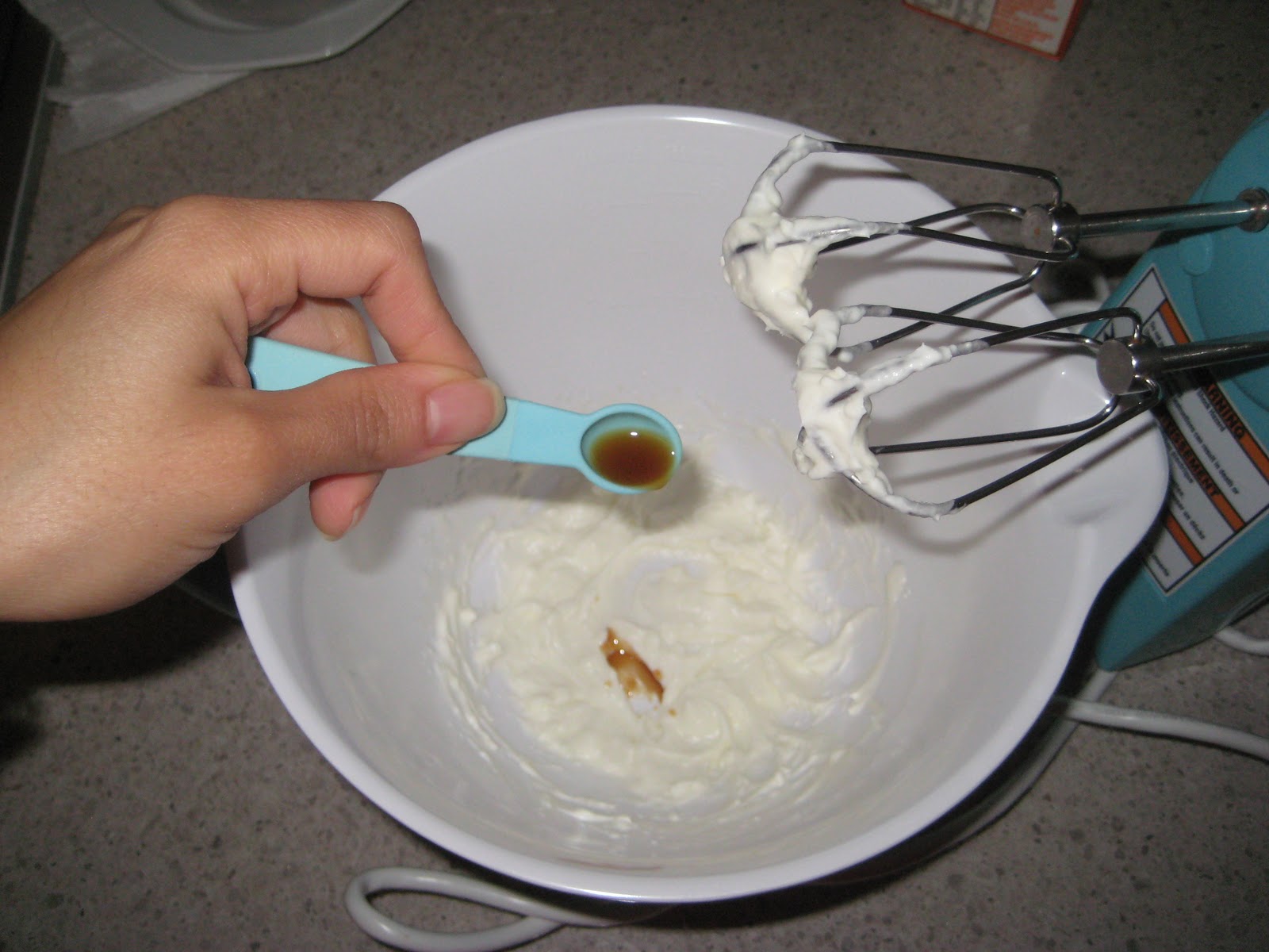 - Lastly, I added a 1/4 tsp of vanilla extract to the Whipped Cream Cheese Frosting.