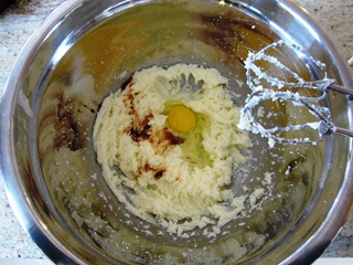 6. Add the eggs one at a time. Add the vanilla as well.