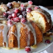 In a small bowl, add the fresh cranberries along with a teaspoon of white flour. Mix. This will prevent the cranberries from sinking to the bottom of the cake.
